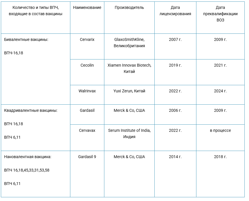 Вакцины для предупреждения ВПЧ-инфекции, лицензированные по состоянию на 01.01.2025