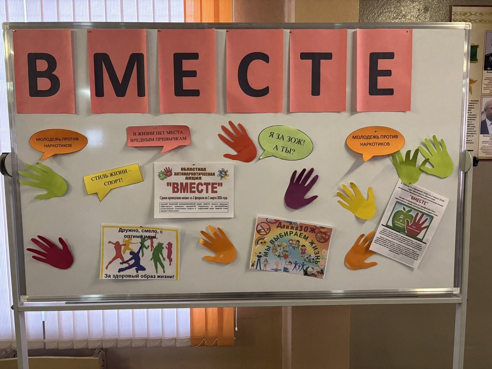 17.02.2026года сотрудниками филиала «Бобруйская городская детская поликлиника №4» (врач-педиатр Акимова Л.И., медицинская сестра Адамович А.Л.) в ГУО «Средняя школа №28 г.Бобруйска»» в рамках информационно-профилактической акции «Бобруйщина ЗА! Общую ответственность», профилактической антинаркотической акции «Вместе» проведен Шок-урок «Наркотики и СПИД. Не отнимай у себя завтра».